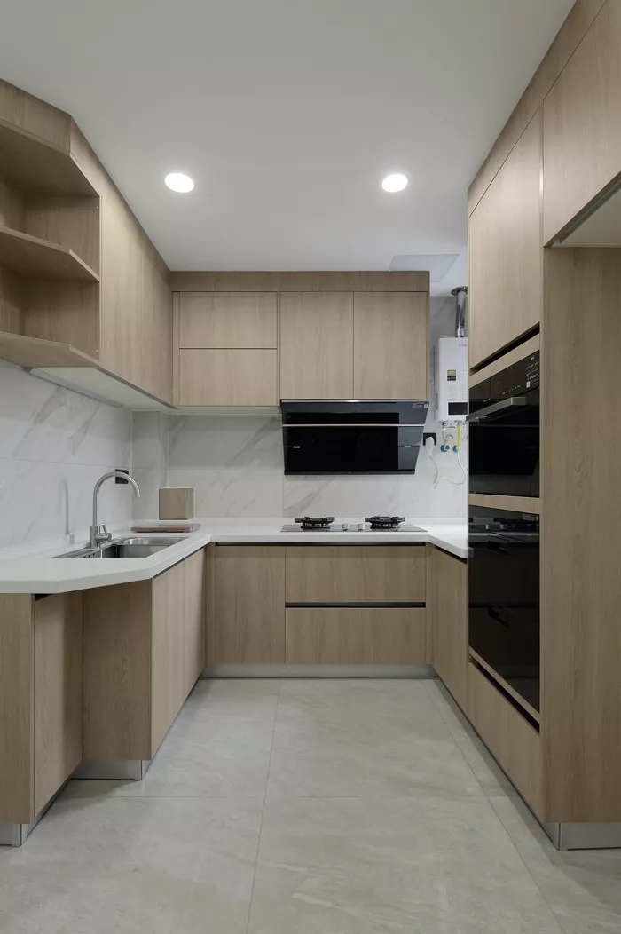 2.一般U型廚房的動線最好,轉(zhuǎn)過身就可以洗菜、炒菜,各有分工可以很好的提高效率。